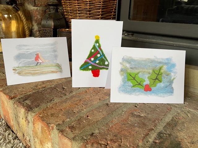 So, what else have I been up to this week? Well lots actually! Firstly, last weekend I had some creative time in the cabin, which I love and designed 2 new Christmas cards, above, which have now come back as samples from the printers. For some reason they always look better when they are printed up as cards, Jean at my local print shop in Holmfirth does an amazing job!